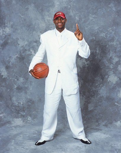 Le nouveau retraité Dwayne Wade, drafté la même année, a été le premier à se moquer de cette tenue : « Il a pris les draps de l’hôtel pour s’enrouler avec ». Difficile de le contredire. Mais peu importe, le King est le King, même en blanc.