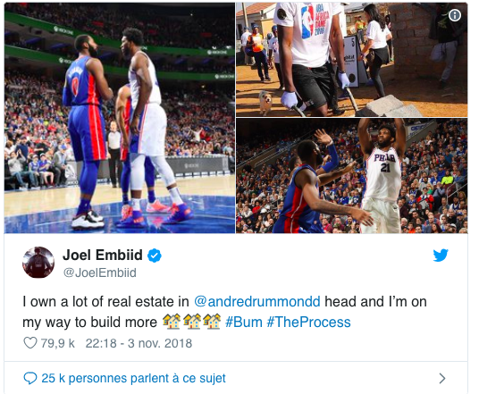 Mais le pivot n’utilise pas que les mots. Là où Embiid se démarque des autres c’est qu’il utilise régulièrement des montages pour mieux illustrer ses propos et c’est lui-même qui post sur ses réseaux. Toutefois, là où le Camerounais pourrait réinstaurer un truc sympa, il pourrait en faire une arme de destruction massive à son encontre. Parce que oui, le côté clown et provocateur ça peut durer ⅔ ans surtout s’il vanne les mêmes joueurs (coucou Drummond).