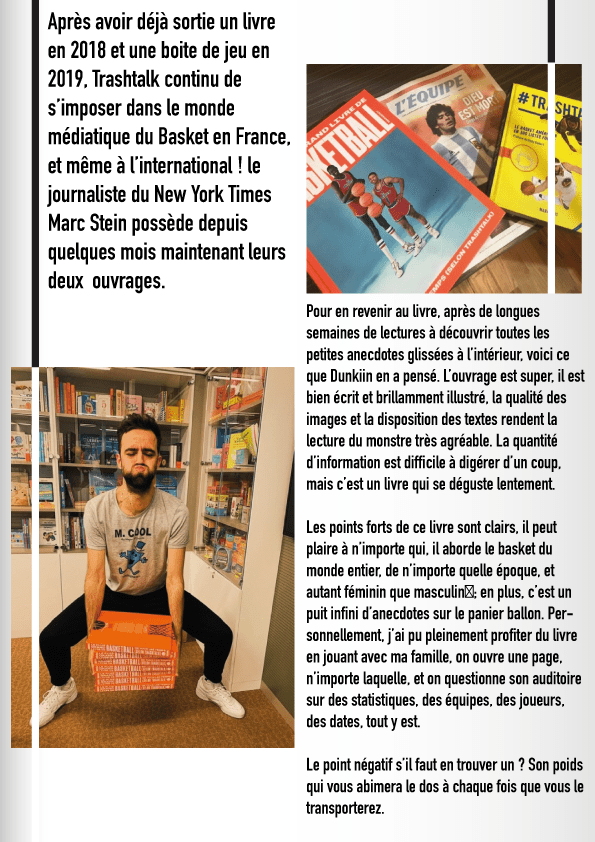 Si vous ne l’avez pas encore ? Il est encore disponible, je brulais d’envie en écrivant cet article de vous raconter les centaines d’anecdotes du plus grand livre de Basketball de tous les temps selon TrashTalk mais ce serait gâcher votre plaisir. Si vous l’avez, relisez-le, si vous ne l’avez pas, filez chez votre libraire, ou alors voici quelques liens pour le dégoter : Fnac // Cultura //Amazon
