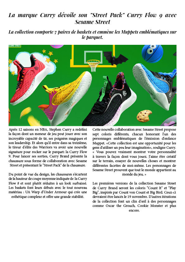 La marque de Stephen Curry dévoile son « Street Pack » Curry Flow 9 avec Sesame Street 8 novembre 20217 novembre 2021 par dunkiin Partager : Cliquer pour partager sur X(ouvre dans une nouvelle fenêtre) X Cliquez pour partager sur Facebook(ouvre dans une nouvelle fenêtre) Facebook J’aime chargement… dunkiin Laisser un commentaire Annuler la réponse. Δ