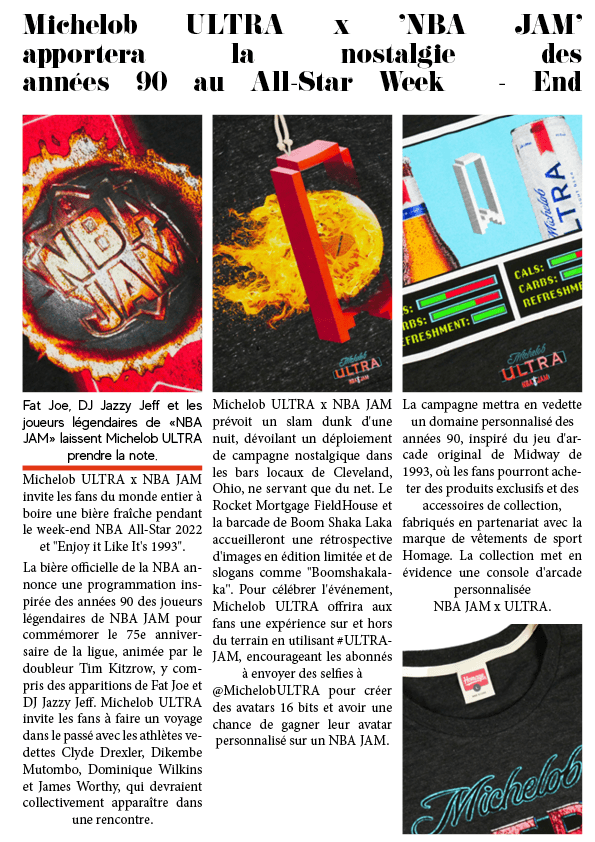 Michelob ULTRA x ‘NBA JAM’ apportera la nostalgie des années 90 au All-Star Week – End 17 février 202216 février 2022 par dunkiin Partager : Cliquer pour partager sur X(ouvre dans une nouvelle fenêtre) X Cliquez pour partager sur Facebook(ouvre dans une nouvelle fenêtre) Facebook J’aime chargement… dunkiin Laisser un commentaire Annuler la réponse. Δ