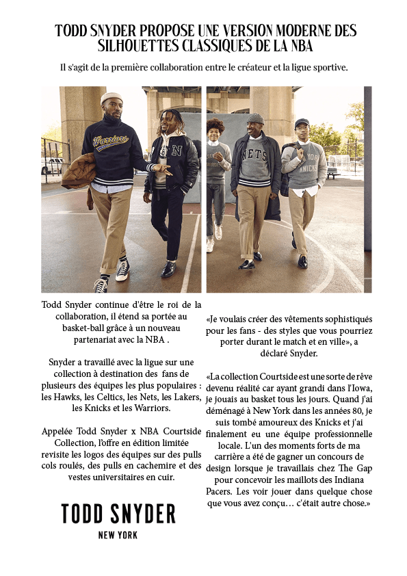 Todd Snyder propose une version moderne des silhouettes classiques de la NBA 30 décembre 20226 janvier 2023 par dunkiin LA COLLECTION ICI Partager : Cliquer pour partager sur X(ouvre dans une nouvelle fenêtre) X Cliquez pour partager sur Facebook(ouvre dans une nouvelle fenêtre) Facebook J’aime chargement… dunkiin Laisser un commentaire Annuler la réponse. Δ