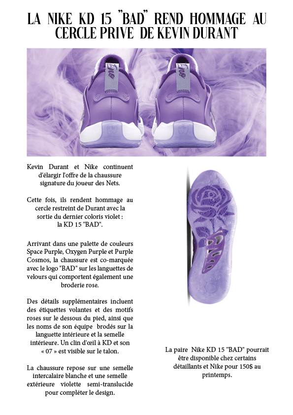 La Nike KD 15 « BAD » rend hommage au cercle privé de Kevin Durant 20 janvier 20234 janvier 2023 par dunkiin 1/2/3/4 Partager : Cliquer pour partager sur X(ouvre dans une nouvelle fenêtre) X Cliquez pour partager sur Facebook(ouvre dans une nouvelle fenêtre) Facebook J’aime chargement… dunkiin Laisser un commentaire Annuler la réponse. Δ