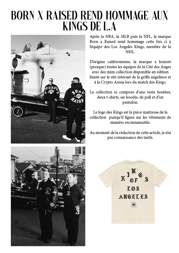 Born x Raised rend hommage aux Kings de L.A 19 février 202319 février 2023 par dunkiin LA COLLECTION ICI Partager : Cliquer pour partager sur X(ouvre dans une nouvelle fenêtre) X Cliquez pour partager sur Facebook(ouvre dans une nouvelle fenêtre) Facebook J’aime chargement… dunkiin Laisser un commentaire Annuler la réponse. Δ