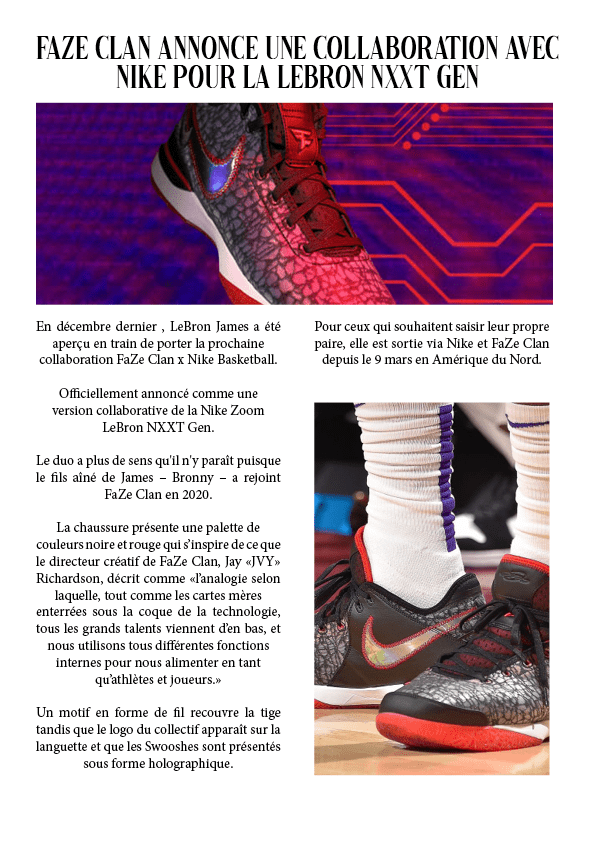 FaZe Clan annonce une collaboration avec Nike pour la LeBron NXXT Gen 28 mars 20234 avril 2023 par dunkiin LA PAIRE ICI Partager : Cliquer pour partager sur X(ouvre dans une nouvelle fenêtre) X Cliquez pour partager sur Facebook(ouvre dans une nouvelle fenêtre) Facebook J’aime chargement… dunkiin Laisser un commentaire Annuler la réponse. Δ