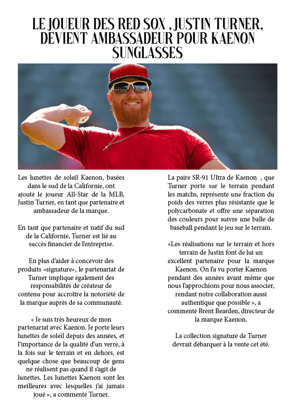 Le joueur des Red Sox , Justin Turner, devient ambassadeur pour Kaenon Sunglasses 7 avril 202330 avril 2023 par dunkiin Partager : Cliquer pour partager sur X(ouvre dans une nouvelle fenêtre) X Cliquez pour partager sur Facebook(ouvre dans une nouvelle fenêtre) Facebook J’aime chargement… dunkiin Laisser un commentaire Annuler la réponse. Δ