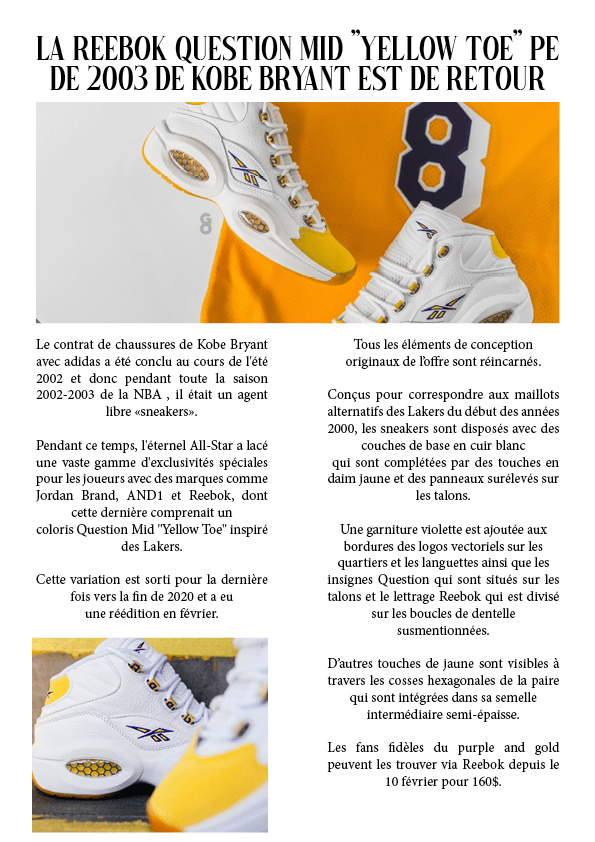 La Reebok Question Mid « Yellow Toe » PE de 2003 de Kobe Bryant est de retour 21 avril 20231 mars 2023 par dunkiin LA PAIRE ICI Partager : Cliquer pour partager sur X(ouvre dans une nouvelle fenêtre) X Cliquez pour partager sur Facebook(ouvre dans une nouvelle fenêtre) Facebook J’aime chargement… dunkiin Laisser un commentaire Annuler la réponse. Δ