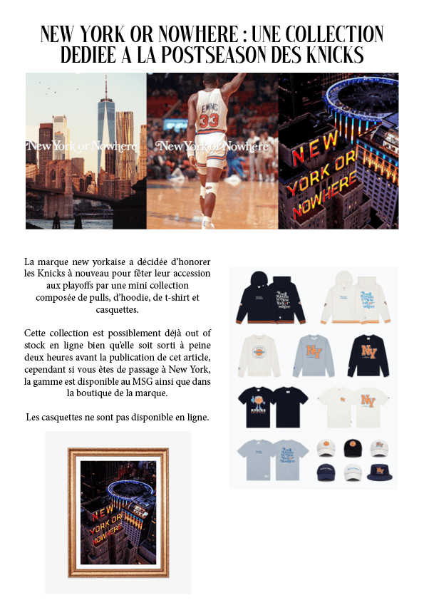 New York Or Nowhere : une collection dédiée à la postseason des Knicks 23 avril 202330 avril 2023 par dunkiin LA COLLECTION ICI Partager : Cliquer pour partager sur X(ouvre dans une nouvelle fenêtre) X Cliquez pour partager sur Facebook(ouvre dans une nouvelle fenêtre) Facebook J’aime chargement… dunkiin Laisser un commentaire Annuler la réponse. Δ