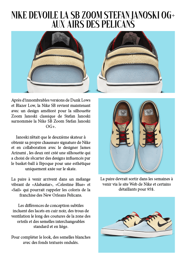 Nike dévoile la SB Zoom Stefan Janoski OG+ aux airs des Pelicans 13 Mai 202319 mars 2023 par dunkiin Partager : Cliquer pour partager sur X(ouvre dans une nouvelle fenêtre) X Cliquez pour partager sur Facebook(ouvre dans une nouvelle fenêtre) Facebook J’aime chargement… dunkiin Laisser un commentaire Annuler la réponse. Δ