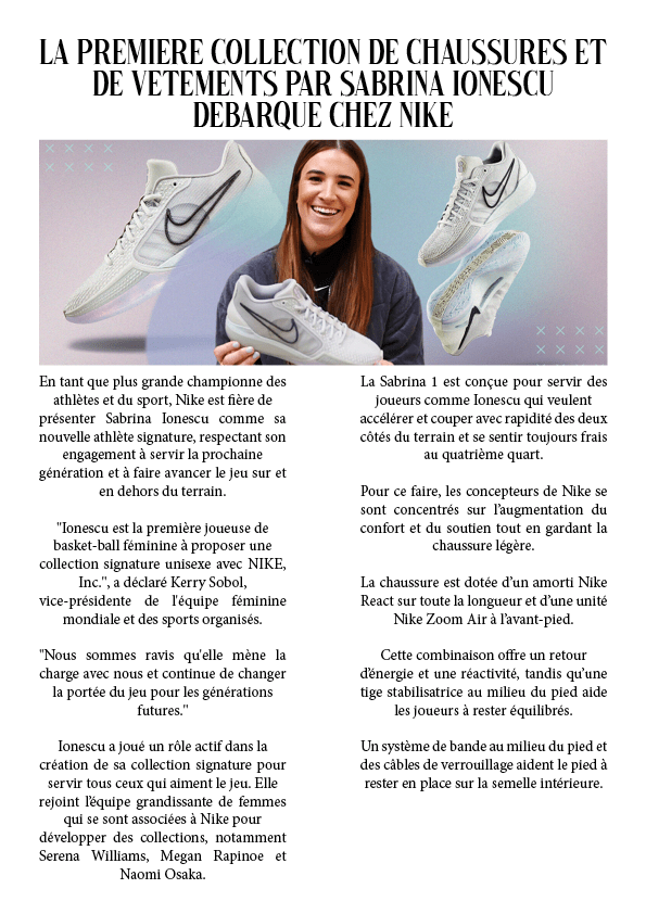 La première collection de chaussures et de vêtements par Sabrina Ionescu débarque chez Nike 24 Mai 202331 Mai 2023 par dunkiin Partager : Cliquer pour partager sur X(ouvre dans une nouvelle fenêtre) X Cliquez pour partager sur Facebook(ouvre dans une nouvelle fenêtre) Facebook J’aime chargement… dunkiin Laisser un commentaire Annuler la réponse. Δ