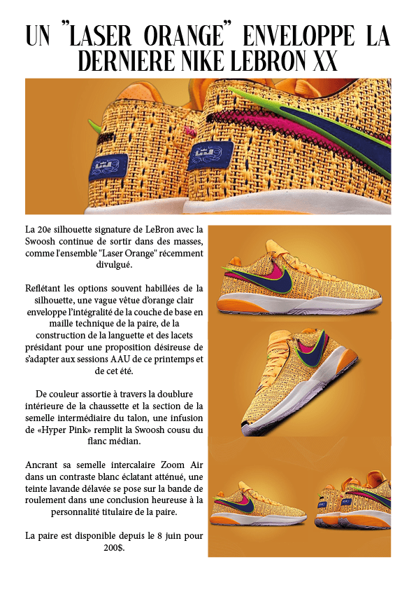 Un « Laser Orange » enveloppe la dernière Nike LeBron XX 12 juin 202323 août 2023 par dunkiin LA PAIRE ICI Partager : Cliquer pour partager sur X(ouvre dans une nouvelle fenêtre) X Cliquez pour partager sur Facebook(ouvre dans une nouvelle fenêtre) Facebook J’aime chargement… dunkiin Laisser un commentaire Annuler la réponse. Δ