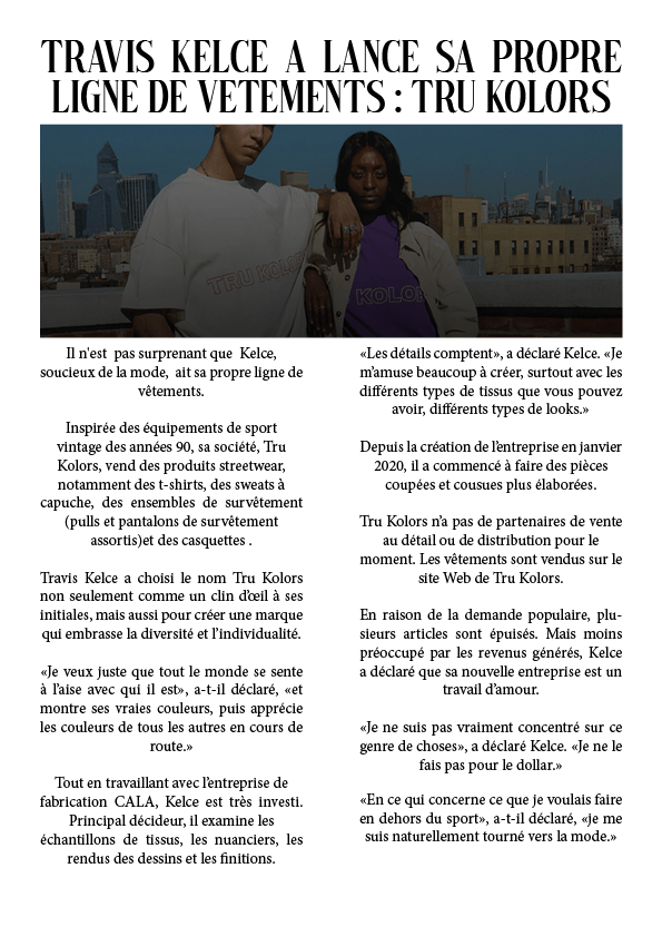 Travis Kelce a lancé sa propre ligne de vêtements : Tru Kolors 25 juin 20233 décembre 2023 par dunkiin LE SITE ICI OU ICI Partager : Cliquer pour partager sur X(ouvre dans une nouvelle fenêtre) X Cliquez pour partager sur Facebook(ouvre dans une nouvelle fenêtre) Facebook J’aime chargement… dunkiin Laisser un commentaire Annuler la réponse. Δ