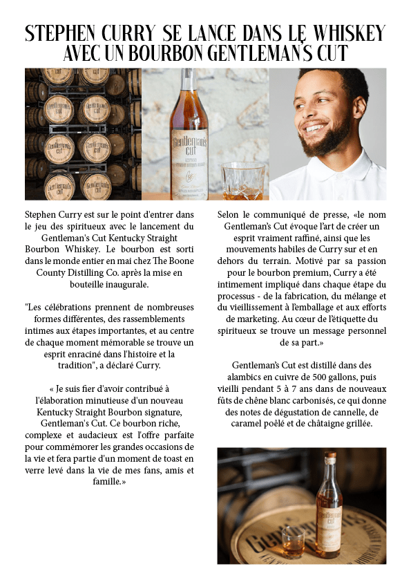 Stephen Curry se lance dans le whiskey avec un Bourbon Gentleman’s Cut 12 juillet 20232 juin 2023 par dunkiin Le site ici /!\L’abus d’alcool est dangereux pour la santé, à consommer avec modération/!\ Partager : Cliquer pour partager sur X(ouvre dans une nouvelle fenêtre) X Cliquez pour partager sur Facebook(ouvre dans une nouvelle fenêtre) Facebook J’aime chargement… dunkiin Laisser un commentaire Annuler la réponse. Δ
