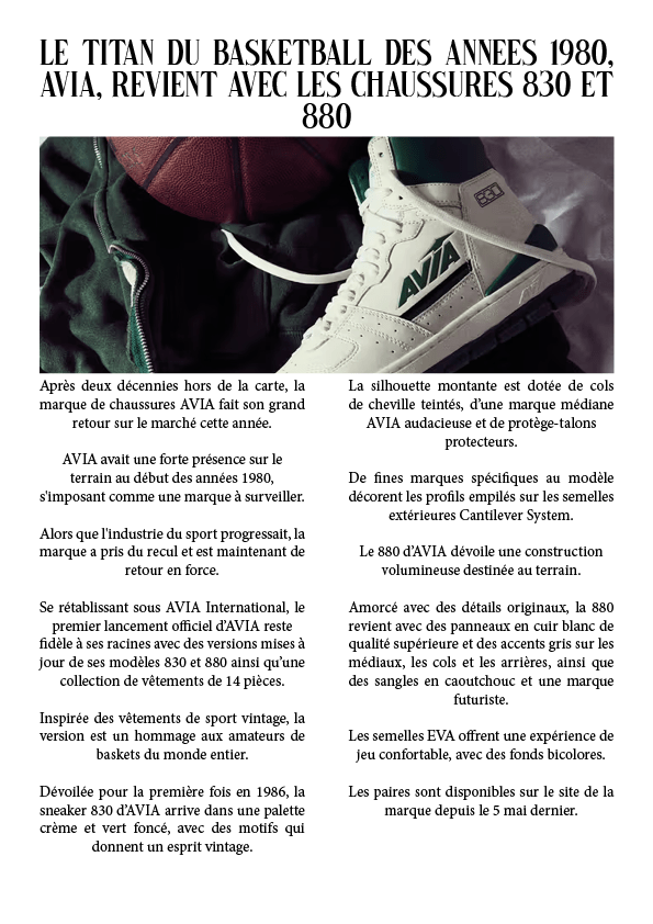 Le titan du basketball des années 1980, AVIA, revient avec les chaussures 830 et 880 25 juillet 20237 août 2023 par dunkiin LE SITE ICI Partager : Cliquer pour partager sur X(ouvre dans une nouvelle fenêtre) X Cliquez pour partager sur Facebook(ouvre dans une nouvelle fenêtre) Facebook J’aime chargement… dunkiin Laisser un commentaire Annuler la réponse. Δ