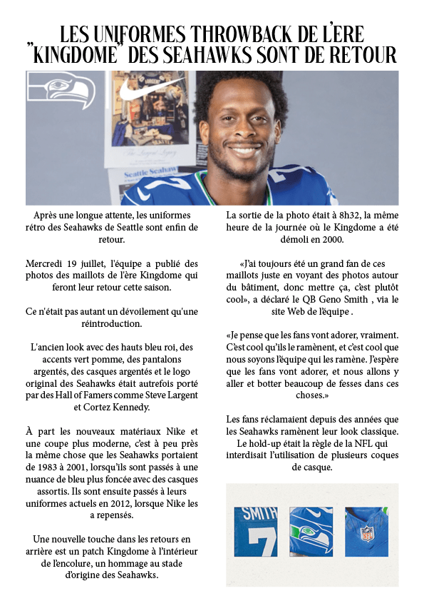 Les uniformes Throwback de l’ère « Kingdome » des Seahawks sont de retour 29 juillet 20237 septembre 2023 par dunkiin 1/2/3/4/5/6 1/2/3/4/5/6 1/2/3/4/5/6 1/2/3/4/5 Profite de 15% de réduction sur FANATICS EUROPE avec le code : FFIDUNK Partager : Cliquer pour partager sur X(ouvre dans une nouvelle fenêtre) X Cliquez pour partager sur Facebook(ouvre dans une nouvelle fenêtre) Facebook J’aime chargement… dunkiin Laisser un commentaire Annuler la réponse. Δ