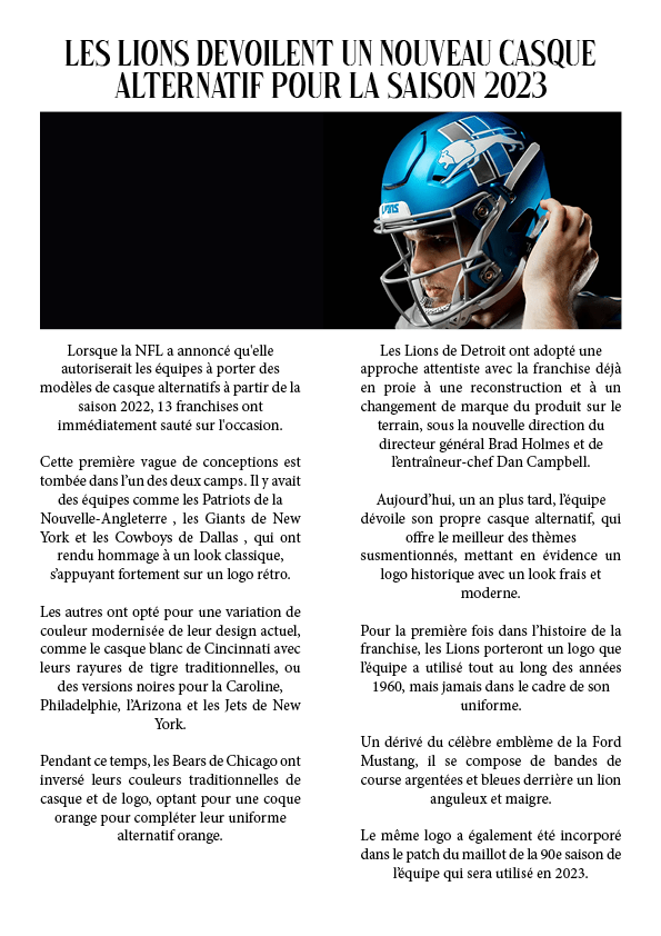 Les Lions dévoilent un nouveau casque alternatif pour la saison 2023 4 août 20231 août 2023 par dunkiin Partager : Cliquer pour partager sur X(ouvre dans une nouvelle fenêtre) X Cliquez pour partager sur Facebook(ouvre dans une nouvelle fenêtre) Facebook J’aime chargement… dunkiin Laisser un commentaire Annuler la réponse. Δ
