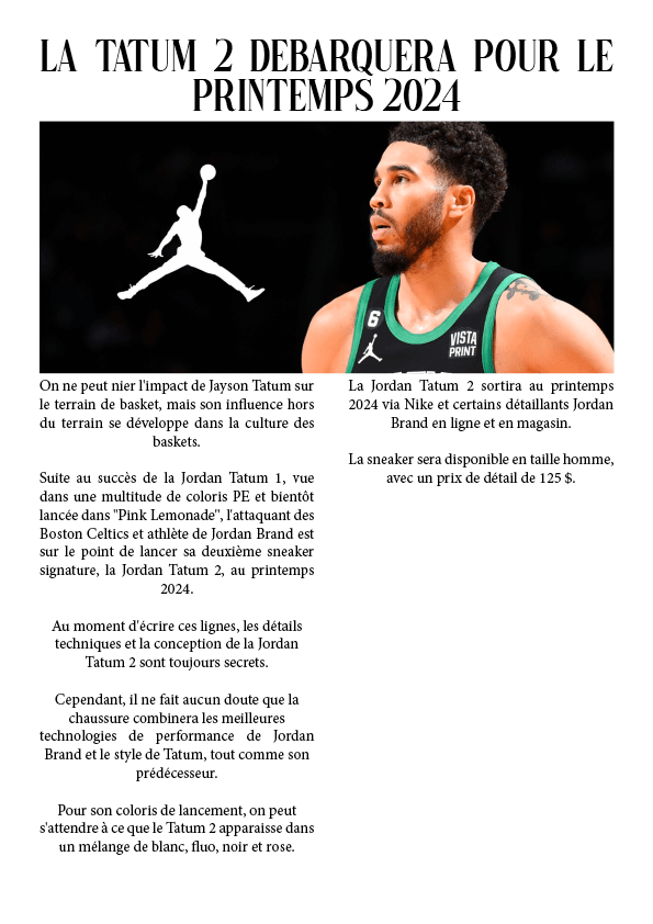 La Tatum 2 débarquera pour le printemps 2024 25 août 20238 juillet 2023 par dunkiin Partager : Cliquer pour partager sur X(ouvre dans une nouvelle fenêtre) X Cliquez pour partager sur Facebook(ouvre dans une nouvelle fenêtre) Facebook J’aime chargement… dunkiin Laisser un commentaire Annuler la réponse. Δ