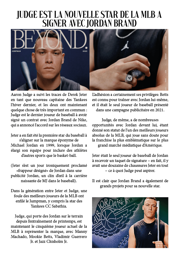 Judge est la nouvelle star de la MLB à signer avec Jordan Brand 26 août 202326 août 2023 par dunkiin Partager : Cliquer pour partager sur X(ouvre dans une nouvelle fenêtre) X Cliquez pour partager sur Facebook(ouvre dans une nouvelle fenêtre) Facebook J’aime chargement… dunkiin Laisser un commentaire Annuler la réponse. Δ