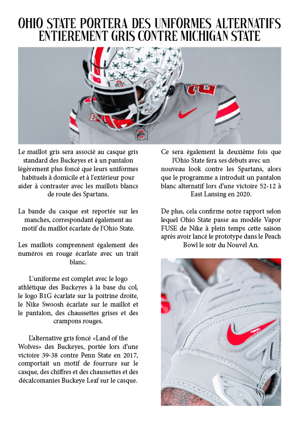 Ohio State portera des uniformes alternatifs entièrement gris contre Michigan State 3 septembre 20231 août 2023 par dunkiin Partager : Cliquer pour partager sur X(ouvre dans une nouvelle fenêtre) X Cliquez pour partager sur Facebook(ouvre dans une nouvelle fenêtre) Facebook J’aime chargement… dunkiin Laisser un commentaire Annuler la réponse. Δ