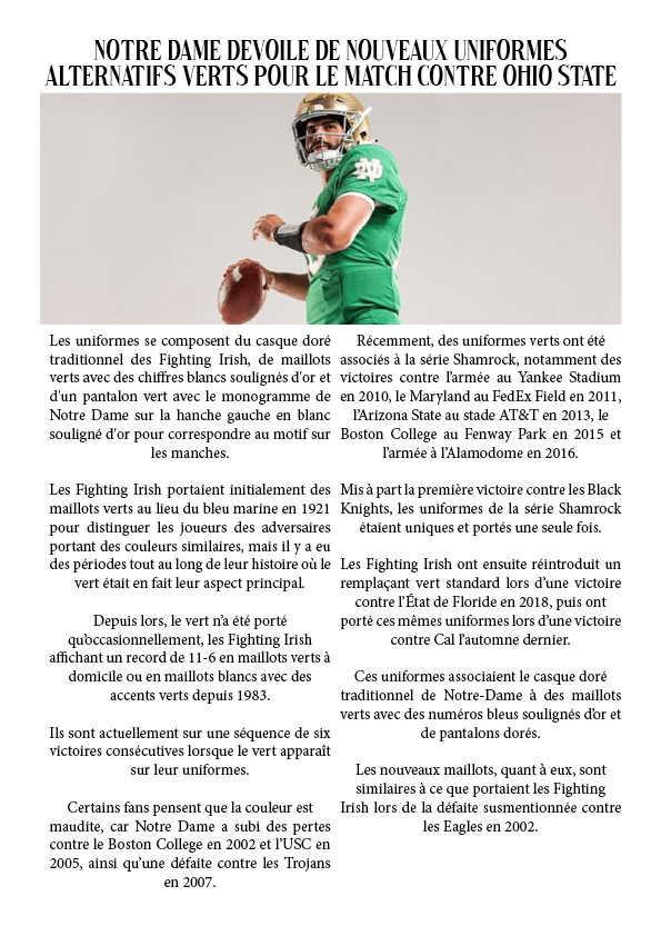 Notre Dame dévoile de nouveaux uniformes alternatifs verts pour le match contre Ohio State 5 septembre 20231 août 2023 par dunkiin Partager : Cliquer pour partager sur X(ouvre dans une nouvelle fenêtre) X Cliquez pour partager sur Facebook(ouvre dans une nouvelle fenêtre) Facebook J’aime chargement… dunkiin Laisser un commentaire Annuler la réponse. Δ