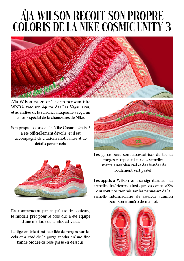 A’ja Wilson reçoit son propre coloris de la Nike Cosmic Unity 3 15 septembre 202329 juillet 2023 par dunkiin Partager : Cliquer pour partager sur X(ouvre dans une nouvelle fenêtre) X Cliquez pour partager sur Facebook(ouvre dans une nouvelle fenêtre) Facebook J’aime chargement… dunkiin Laisser un commentaire Annuler la réponse. Δ