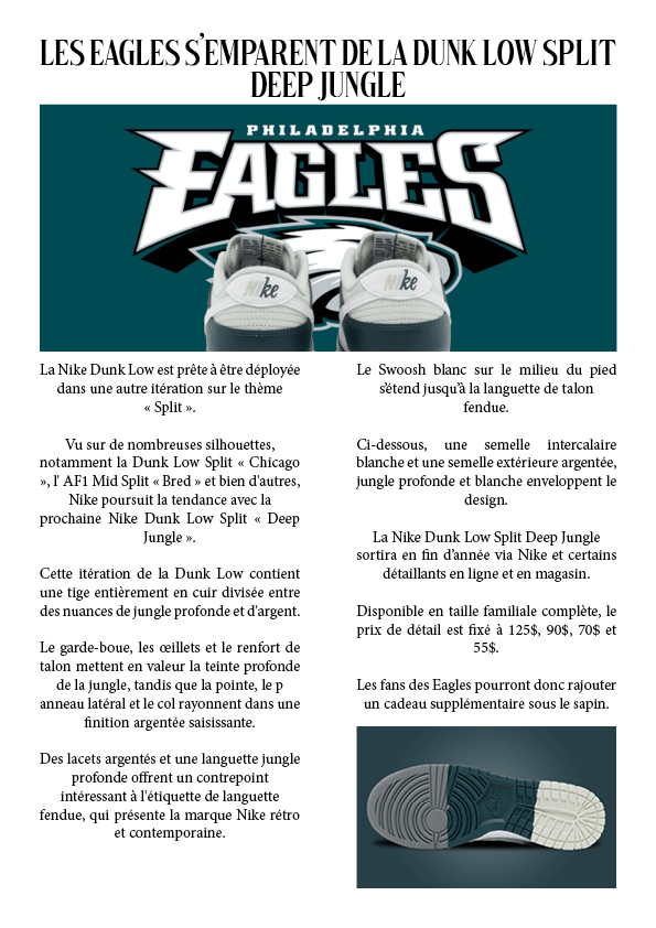 Les Eagles s’emparent de la Dunk Low Split Deep jungle 2 octobre 20239 octobre 2023 par dunkiin 1/2/3/4/5 1/2/3/4 Partager : Cliquer pour partager sur X(ouvre dans une nouvelle fenêtre) X Cliquez pour partager sur Facebook(ouvre dans une nouvelle fenêtre) Facebook J’aime chargement… dunkiin Laisser un commentaire Annuler la réponse. Δ