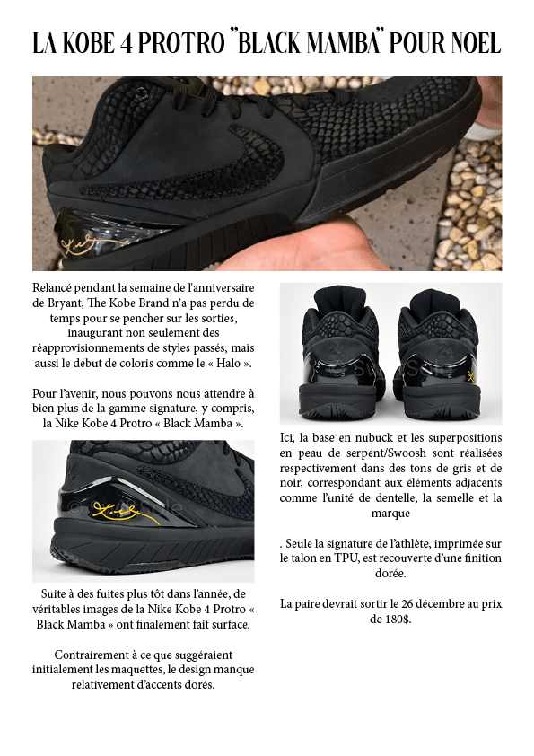 La Kobe 4 Protro « Black Mamba » pour noël 3 novembre 202316 octobre 2023 par dunkiin Partager : Cliquer pour partager sur X(ouvre dans une nouvelle fenêtre) X Cliquez pour partager sur Facebook(ouvre dans une nouvelle fenêtre) Facebook J’aime chargement… dunkiin Laisser un commentaire Annuler la réponse. Δ