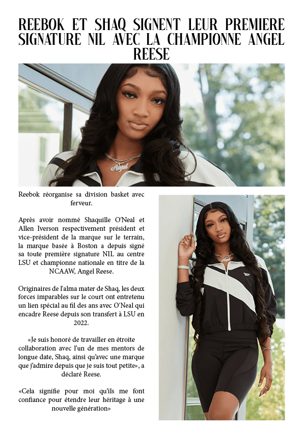 Reebok et Shaq signent leur première signature NIL avec la championne Angel Reese 4 novembre 202326 octobre 2023 par dunkiin Partager : Cliquer pour partager sur X(ouvre dans une nouvelle fenêtre) X Cliquez pour partager sur Facebook(ouvre dans une nouvelle fenêtre) Facebook J’aime chargement… dunkiin Laisser un commentaire Annuler la réponse. Δ