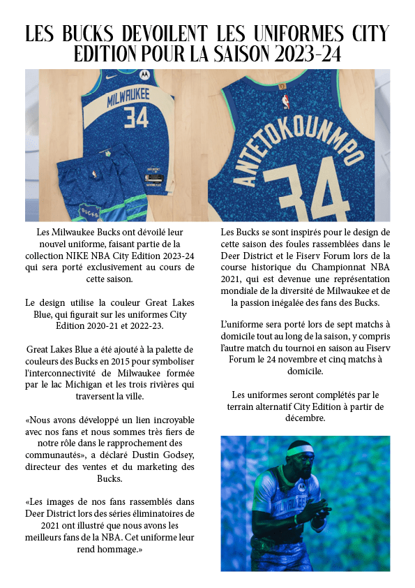 Les Bucks dévoilent les uniformes City Edition pour la saison 2023-24 14 décembre 202322 novembre 2023 par dunkiin LA COLLECTION ICI, ICI OU ICI Profite de 15% de réduction sur FANATICS EUROPE avec le code : FFIDUNK Si vous achetez un produit via un lien sur le site Web, Dunkiin peut recevoir une commission d’affiliation. Partager : Cliquer pour partager sur X(ouvre dans une nouvelle fenêtre) X Cliquez pour partager sur Facebook(ouvre dans une nouvelle fenêtre) Facebook J’aime chargement… dunkiin Laisser un commentaire Annuler la réponse. Δ