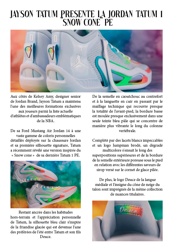 Jayson Tatum présente la Jordan Tatum 1 « Snow Cone » PE 16 décembre 202320 novembre 2023 par dunkiin Partager : Cliquer pour partager sur X(ouvre dans une nouvelle fenêtre) X Cliquez pour partager sur Facebook(ouvre dans une nouvelle fenêtre) Facebook J’aime chargement… dunkiin Laisser un commentaire Annuler la réponse. Δ