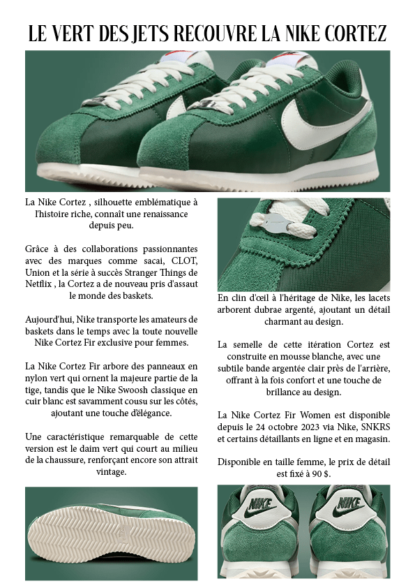 Le vert des Jets recouvre la Nike Cortez 28 décembre 202327 décembre 2023 par dunkiin Partager : Cliquer pour partager sur X(ouvre dans une nouvelle fenêtre) X Cliquez pour partager sur Facebook(ouvre dans une nouvelle fenêtre) Facebook J’aime chargement… dunkiin Laisser un commentaire Annuler la réponse. Δ