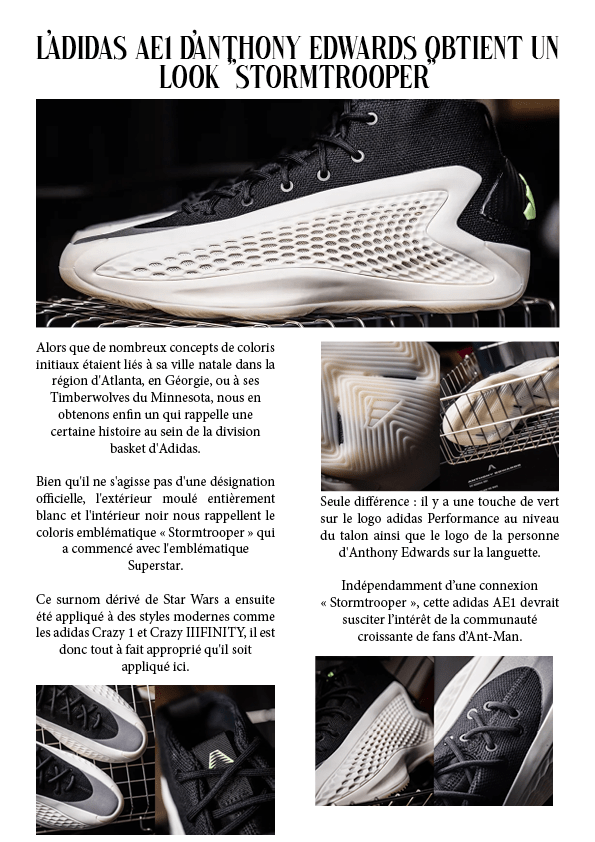 L’adidas AE1 d’Anthony Edwards obtient un look « Stormtrooper » 4 février 202410 janvier 2024 par dunkiin Partager : Cliquer pour partager sur X(ouvre dans une nouvelle fenêtre) X Cliquez pour partager sur Facebook(ouvre dans une nouvelle fenêtre) Facebook J’aime chargement… dunkiin Laisser un commentaire Annuler la réponse. Δ