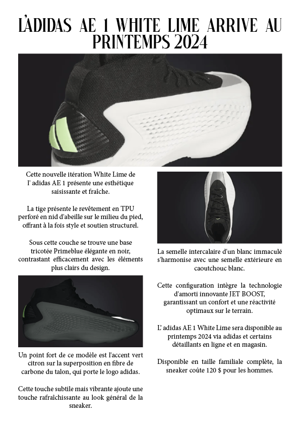 L’adidas AE 1 White Lime arrive au printemps 2024 8 février 202428 décembre 2023 par dunkiin Partager : Cliquer pour partager sur X(ouvre dans une nouvelle fenêtre) X Cliquez pour partager sur Facebook(ouvre dans une nouvelle fenêtre) Facebook J’aime chargement… dunkiin Laisser un commentaire Annuler la réponse. Δ