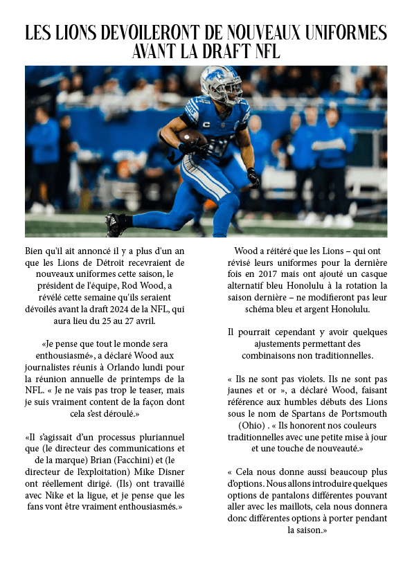 Les Lions dévoileront de nouveaux uniformes avant la Draft NFL 28 mars 202428 mars 2024 par dunkiin Partager : Cliquer pour partager sur X(ouvre dans une nouvelle fenêtre) X Cliquez pour partager sur Facebook(ouvre dans une nouvelle fenêtre) Facebook J’aime chargement… dunkiin Laisser un commentaire Annuler la réponse. Δ