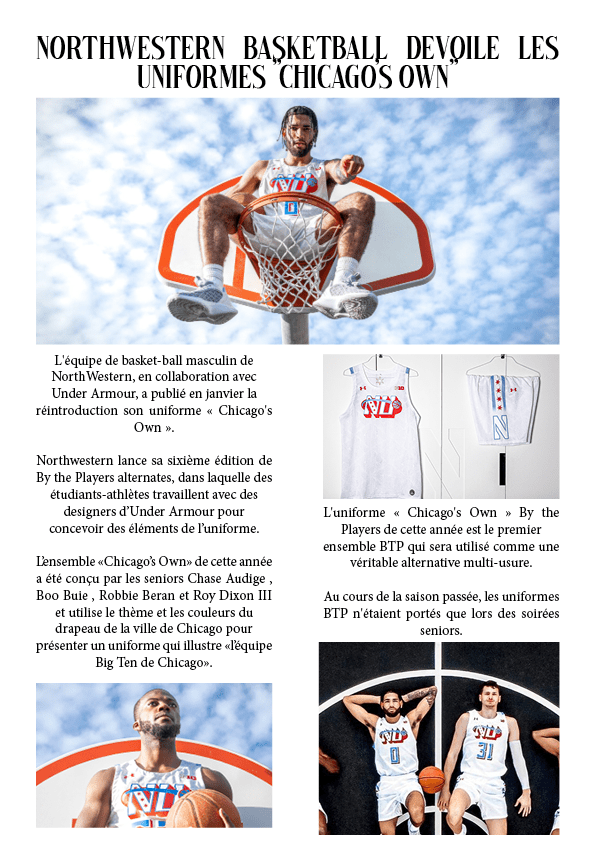Northwestern Basketball dévoile les uniformes « Chicago’s Own » 18 avril 202412 mars 2024 par dunkiin Partager : Cliquer pour partager sur X(ouvre dans une nouvelle fenêtre) X Cliquez pour partager sur Facebook(ouvre dans une nouvelle fenêtre) Facebook J’aime chargement… dunkiin Laisser un commentaire Annuler la réponse. Δ