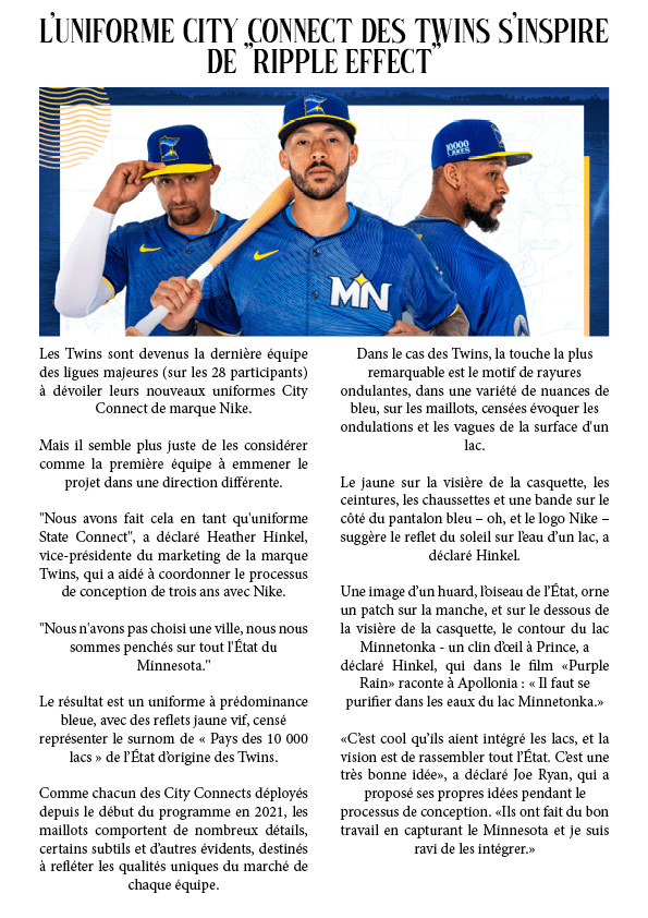 L’uniforme City Connect des Twins s’inspire de « Ripple Effect » 15 juin 202414 juin 2024 par dunkiin *Lien affilié LA COLLECTION ICI* Partager : Cliquer pour partager sur X(ouvre dans une nouvelle fenêtre) X Cliquez pour partager sur Facebook(ouvre dans une nouvelle fenêtre) Facebook J’aime chargement… dunkiin Laisser un commentaire Annuler la réponse. Δ