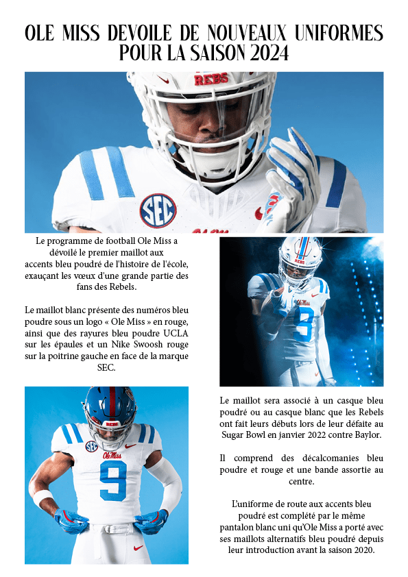 Ole Miss dévoile de nouveaux uniformes pour la saison 2024 1 juillet 202419 juillet 2024 par dunkiin Partager : Cliquer pour partager sur X(ouvre dans une nouvelle fenêtre) X Cliquez pour partager sur Facebook(ouvre dans une nouvelle fenêtre) Facebook J’aime chargement… dunkiin Laisser un commentaire Annuler la réponse. Δ