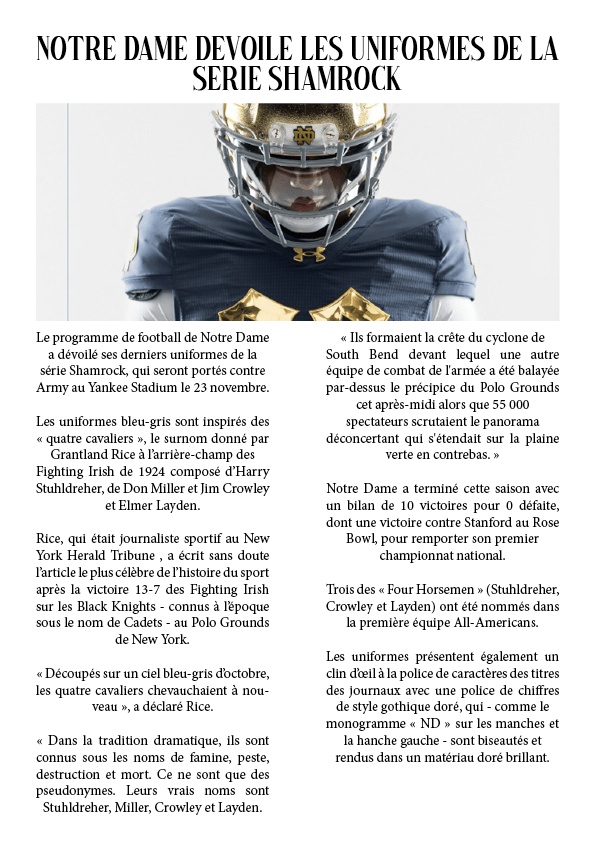 Notre Dame dévoile les uniformes de la série Shamrock 27 juillet 202427 juillet 2024 par dunkiin LA COLLECTION SHAMROCK ICI Partager : Cliquer pour partager sur X(ouvre dans une nouvelle fenêtre) X Cliquez pour partager sur Facebook(ouvre dans une nouvelle fenêtre) Facebook J’aime chargement… dunkiin Laisser un commentaire Annuler la réponse. Δ