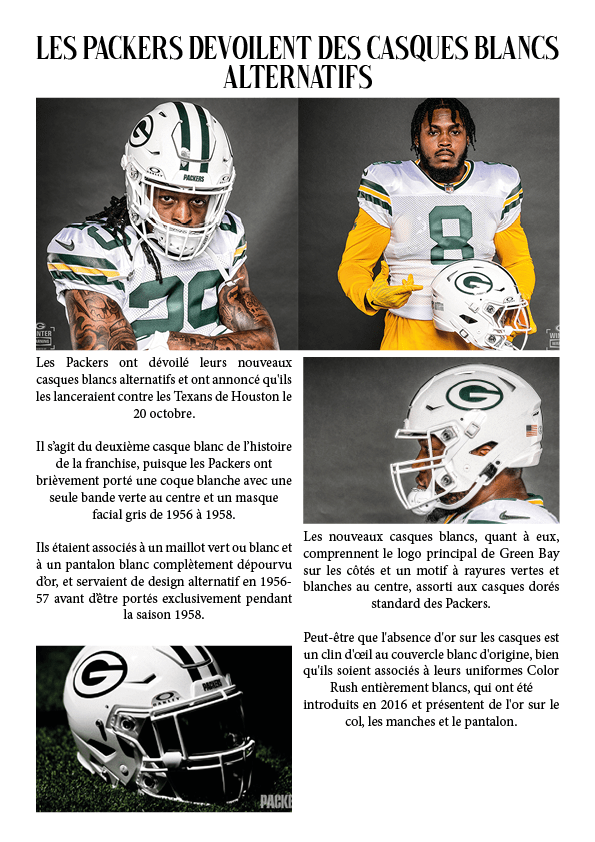 Les Packers dévoilent des casques blancs alternatifs 2 septembre 202410 août 2024 par dunkiin Partager : Cliquer pour partager sur X(ouvre dans une nouvelle fenêtre) X Cliquez pour partager sur Facebook(ouvre dans une nouvelle fenêtre) Facebook J’aime chargement… dunkiin Laisser un commentaire Annuler la réponse. Δ