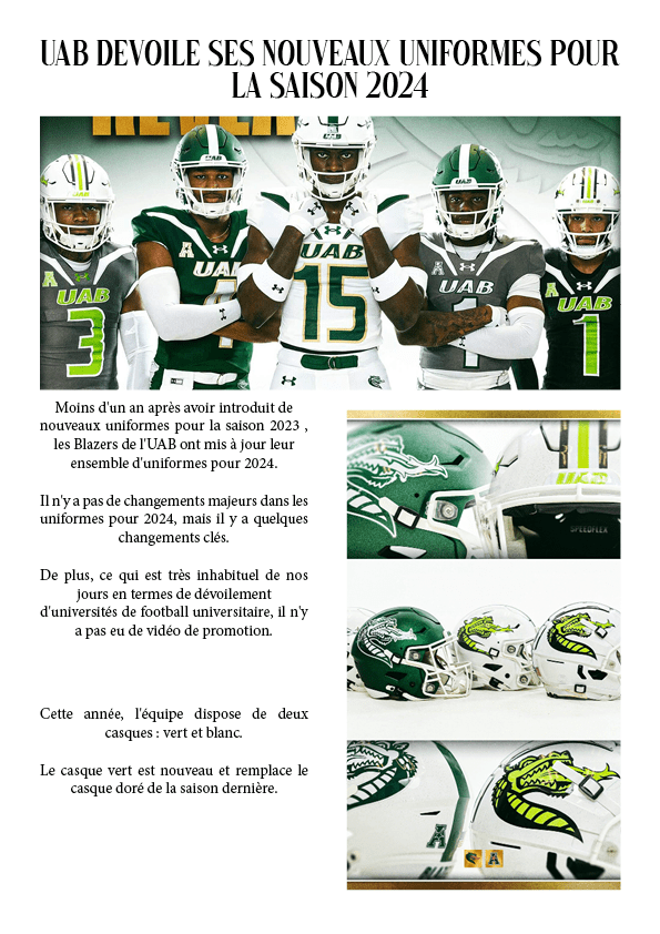 UAB dévoile ses nouveaux uniformes pour la saison 2024 4 septembre 20243 août 2024 par dunkiin Partager : Cliquer pour partager sur X(ouvre dans une nouvelle fenêtre) X Cliquez pour partager sur Facebook(ouvre dans une nouvelle fenêtre) Facebook J’aime chargement… dunkiin Laisser un commentaire Annuler la réponse. Δ