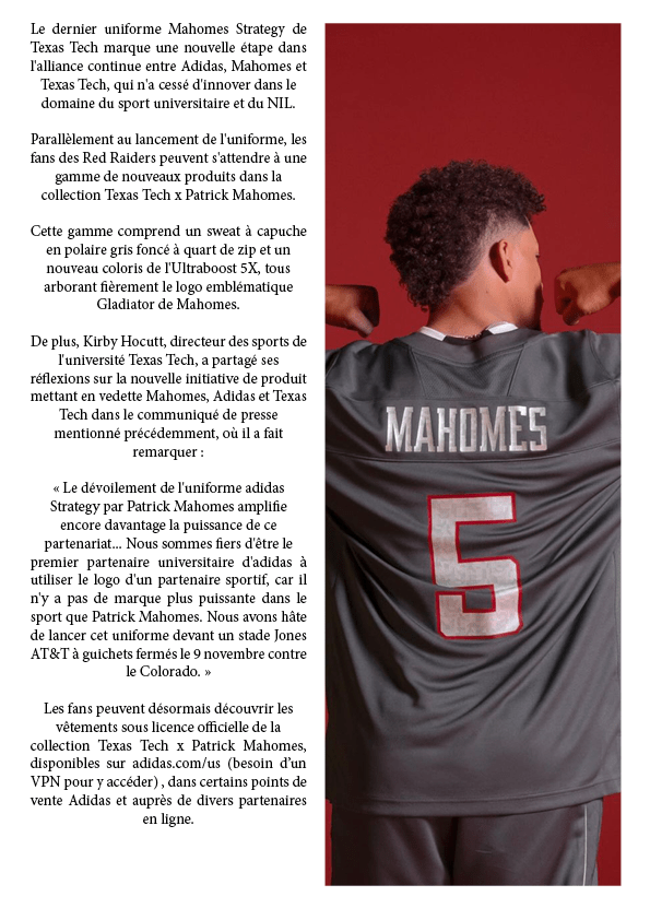 Adidas et Texas Tech dévoilent des uniformes de football avec le logo signature de Mahomes 23 octobre 202421 octobre 2024 par dunkiin LA COLLECTION ICI Partager : Cliquer pour partager sur X(ouvre dans une nouvelle fenêtre) X Cliquez pour partager sur Facebook(ouvre dans une nouvelle fenêtre) Facebook J’aime chargement… dunkiin Laisser un commentaire Annuler la réponse. Δ