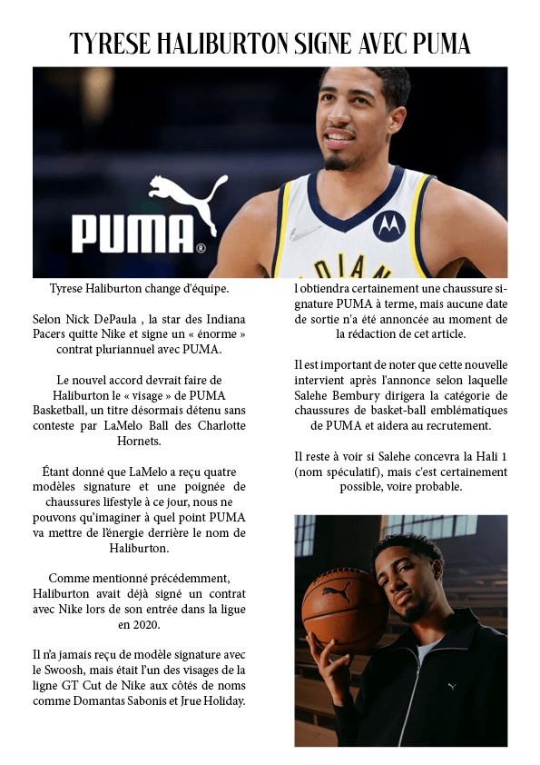 Tyrese Haliburton signe avec PUMA 30 octobre 202411 octobre 2024 par dunkiin Partager : Cliquer pour partager sur X(ouvre dans une nouvelle fenêtre) X Cliquez pour partager sur Facebook(ouvre dans une nouvelle fenêtre) Facebook J’aime chargement… dunkiin Laisser un commentaire Annuler la réponse. Δ