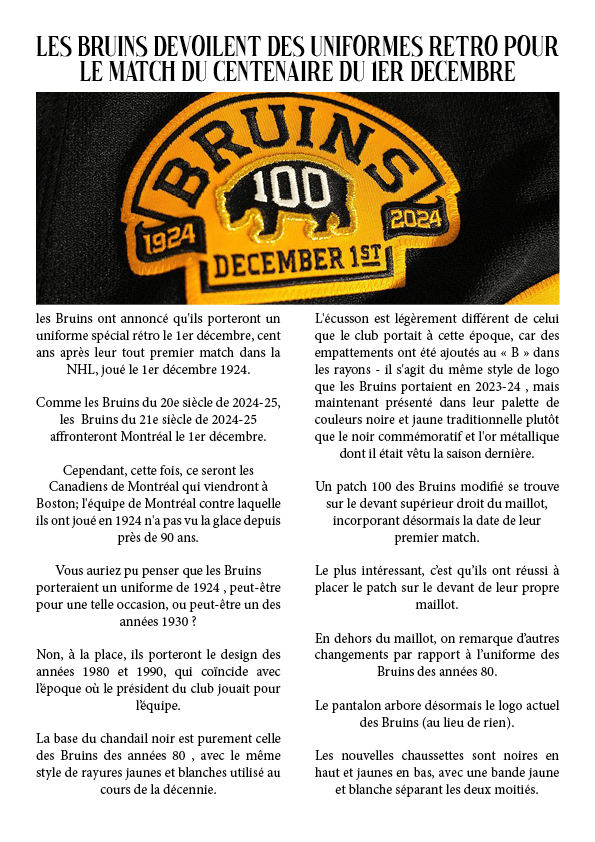 Les Bruins dévoilent des uniformes rétro pour le match du centenaire du 1er décembre 2 novembre 20241 novembre 2024 par dunkiin LES MAILLOTS ICI Partager : Cliquer pour partager sur X(ouvre dans une nouvelle fenêtre) X Cliquez pour partager sur Facebook(ouvre dans une nouvelle fenêtre) Facebook J’aime chargement… dunkiin Laisser un commentaire Annuler la réponse. Δ