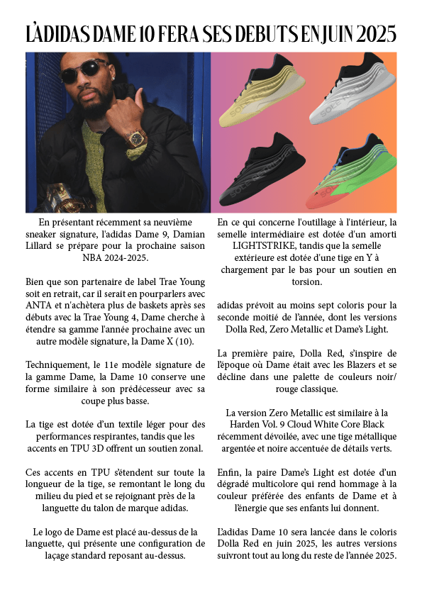 L’adidas Dame 10 fera ses débuts en juin 2025 14 novembre 202425 octobre 2024 par dunkiin Partager : Cliquer pour partager sur X(ouvre dans une nouvelle fenêtre) X Cliquez pour partager sur Facebook(ouvre dans une nouvelle fenêtre) Facebook J’aime chargement… dunkiin Laisser un commentaire Annuler la réponse. Δ