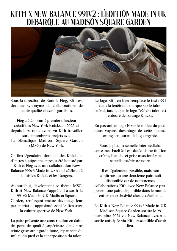 Kith x New Balance 991v2 : L’édition Made in UK débarque au Madison Square Garden 28 novembre 202428 novembre 2024 par dunkiin Partager : Cliquer pour partager sur X(ouvre dans une nouvelle fenêtre) X Cliquez pour partager sur Facebook(ouvre dans une nouvelle fenêtre) Facebook J’aime chargement… dunkiin Laisser un commentaire Annuler la réponse. Δ