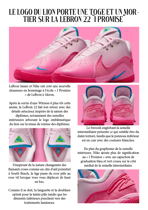 Le logo du lion porte une toge et un mortier sur la LeBron 22 « I Promise » 11 janvier 20257 janvier 2025 par dunkiin Partager : Cliquer pour partager sur X(ouvre dans une nouvelle fenêtre) X Cliquez pour partager sur Facebook(ouvre dans une nouvelle fenêtre) Facebook J’aime chargement… dunkiin Laisser un commentaire Annuler la réponse. Δ