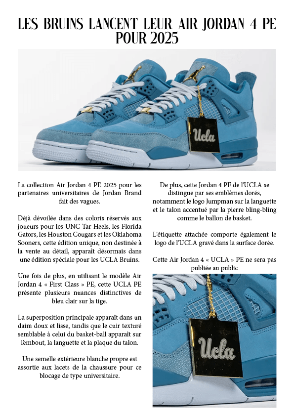 Les Bruins lancent leur Air Jordan 4 PE pour 2025 7 mars 20253 février 2025 par dunkiin Partager : Cliquer pour partager sur X(ouvre dans une nouvelle fenêtre) X Cliquez pour partager sur Facebook(ouvre dans une nouvelle fenêtre) Facebook J’aime chargement… dunkiin Laisser un commentaire Annuler la réponse. Δ