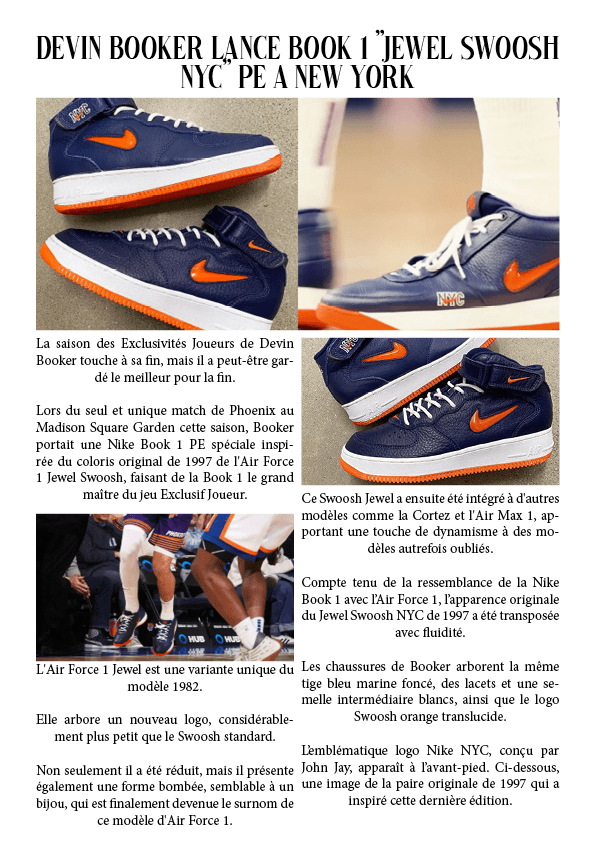 Devin Booker lance Book 1 « Jewel Swoosh NYC » PE à New York 15 avril 202514 avril 2025 par dunkiin Partager : Cliquer pour partager sur X(ouvre dans une nouvelle fenêtre) X Cliquez pour partager sur Facebook(ouvre dans une nouvelle fenêtre) Facebook J’aime chargement… dunkiin Laisser un commentaire Annuler la réponse. Δ