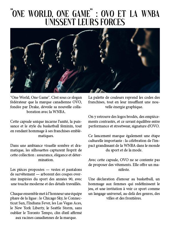 « One World, One Game » : OVO et la WNBA unissent leurs forces 23 Mai 202529 juin 2025 par dunkiin LA COLLECTION ICI Partager : Cliquer pour partager sur X(ouvre dans une nouvelle fenêtre) X Cliquez pour partager sur Facebook(ouvre dans une nouvelle fenêtre) Facebook J’aime chargement… dunkiin Laisser un commentaire Annuler la réponse. Δ
