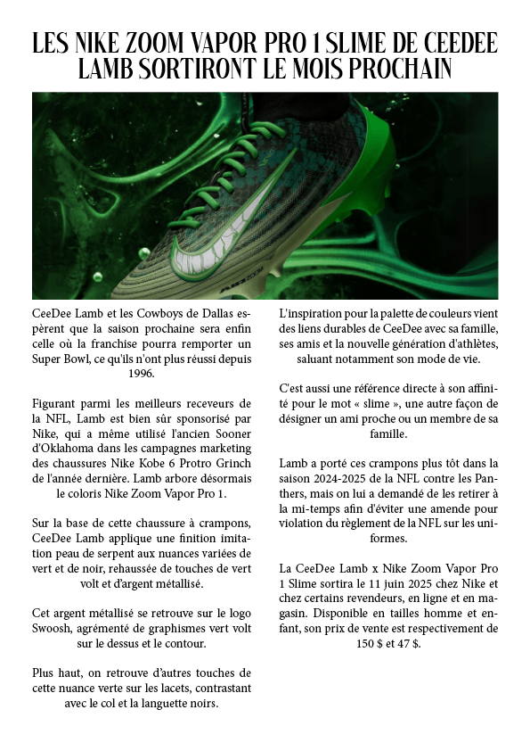 Les Nike Zoom Vapor Pro 1 Slime de CeeDee Lamb sortiront le mois prochain 30 Mai 202529 Mai 2025 par dunkiin Partager : Cliquer pour partager sur X(ouvre dans une nouvelle fenêtre) X Cliquez pour partager sur Facebook(ouvre dans une nouvelle fenêtre) Facebook J’aime chargement… dunkiin Laisser un commentaire Annuler la réponse. Δ